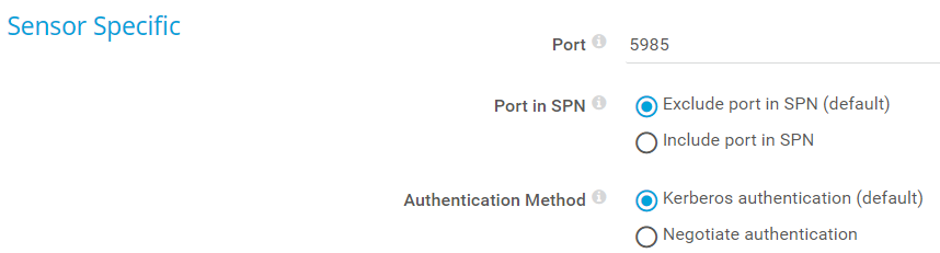 Kerberos authentication (default): The sensor uses Kerberos authentication.